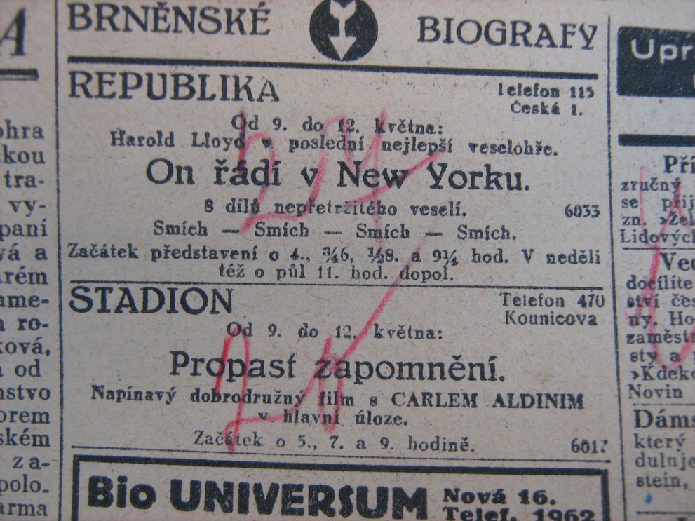 | Počet promítnutí | Lidové noviny | 1930-05-09 | 234 | 100 |
