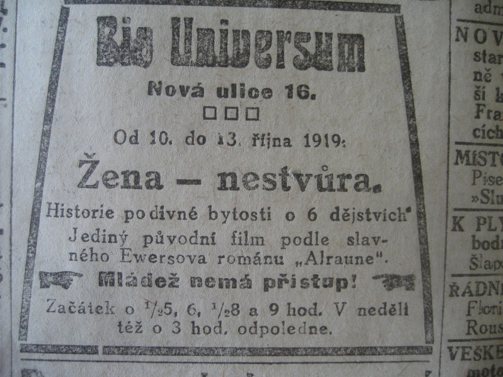 | Kino | Lidové noviny | 1919-10-10 | 281 | 100 |