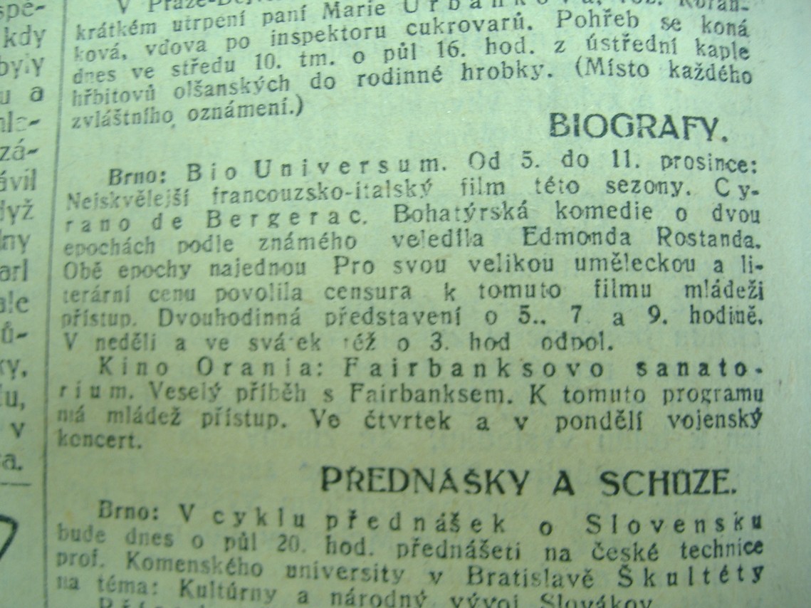 | Dny promítání (od) | Lidové noviny | 1924-12-09 | 616 | 100 |