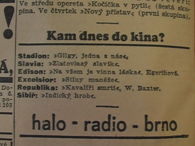 | Kino | Moravské slovo | 1933-06-21 | 119 | 100 |