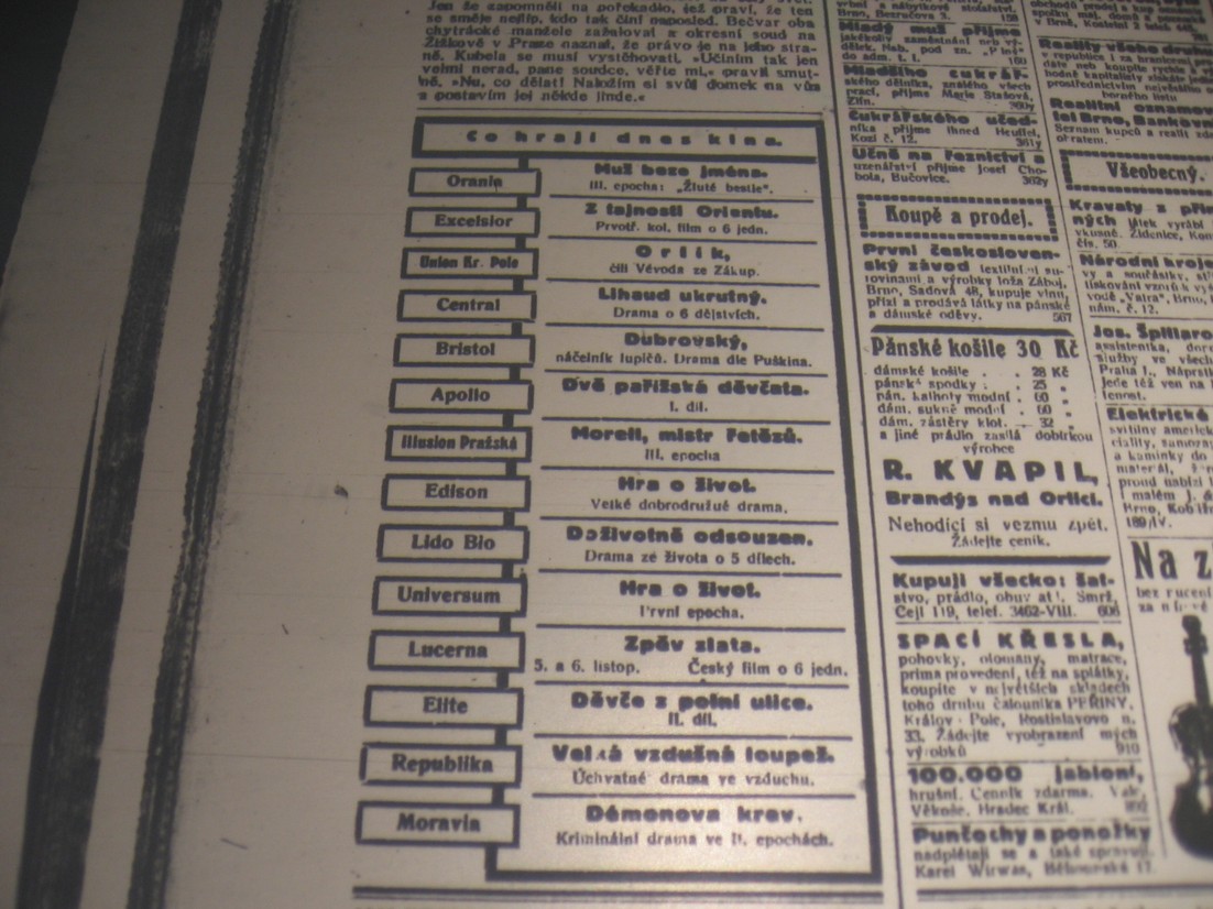 | Programme publishing date | 1921-12-02: Moravské noviny | 1921-12-02 | 276 | 100 |