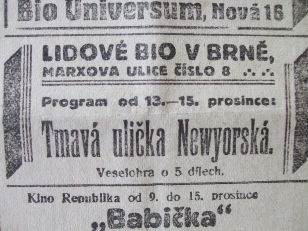 | Programme publishing date | 1921-12-14: Moravské noviny | 1921-12-14 | 285 | 100 |