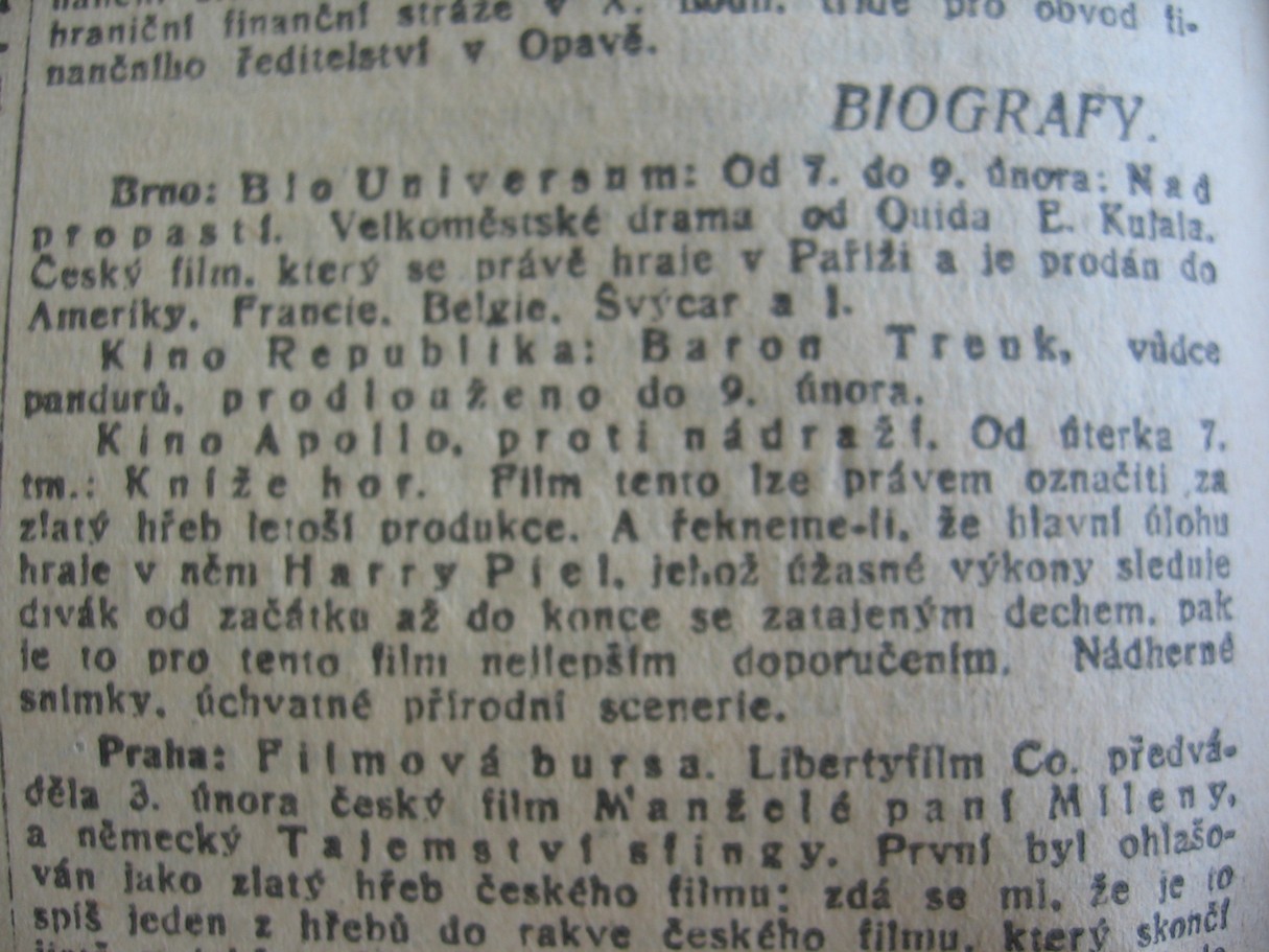 | Number of screenings | Lidové noviny | 1922-03-08 | 69 | 100 |