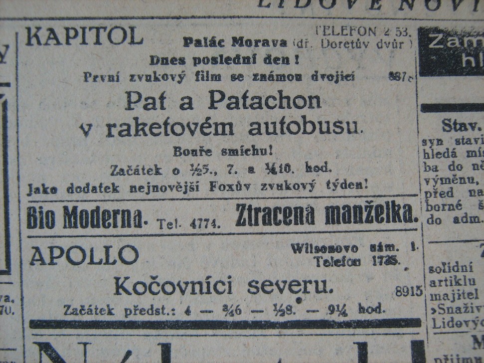 | Numbers | Pat a Patachon v raketovém autobusu: Lidové noviny | 1930-07-04 | 334 | 100 |