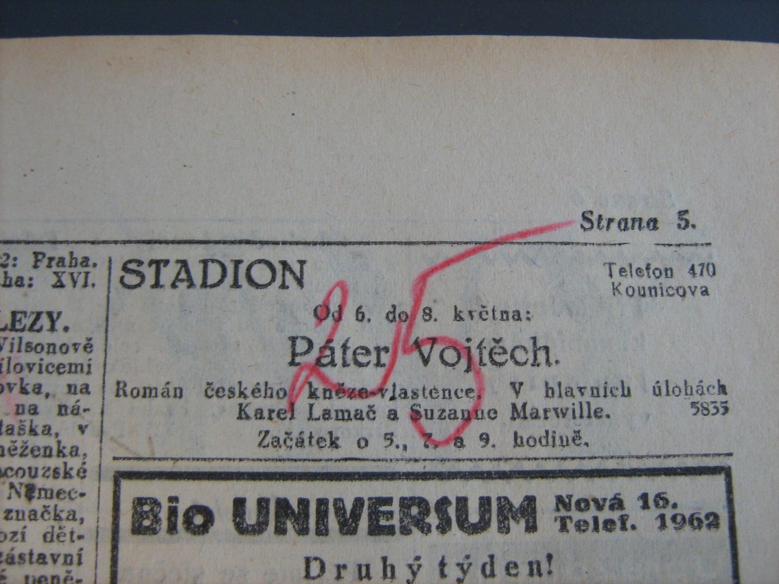 | Number of screenings | Lidové noviny | 1930-05-06 | 228 | 100 |