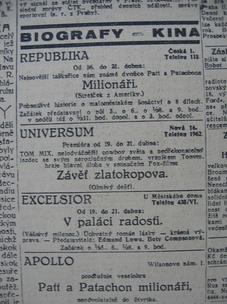 | Programme Description (CZ) | Lidové noviny | 1927-04-19 | 198 | 100 |