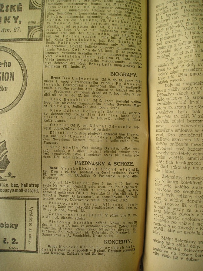 | Programme publishing date | Lidové noviny | 1923-02-09 | 69 | 100 |