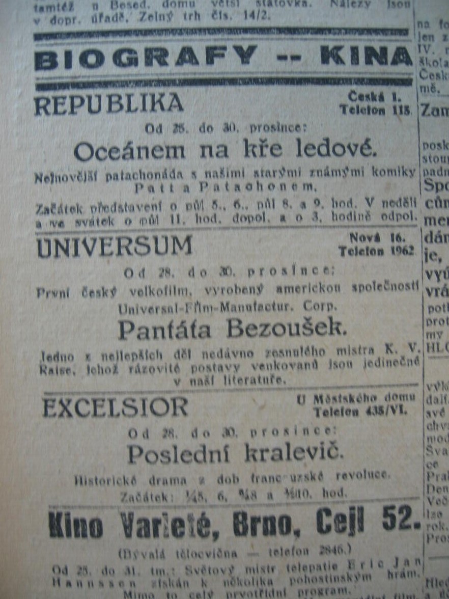 | Programme Description (CZ) | Lidové noviny | 1926-12-28 | 651 | 100 |