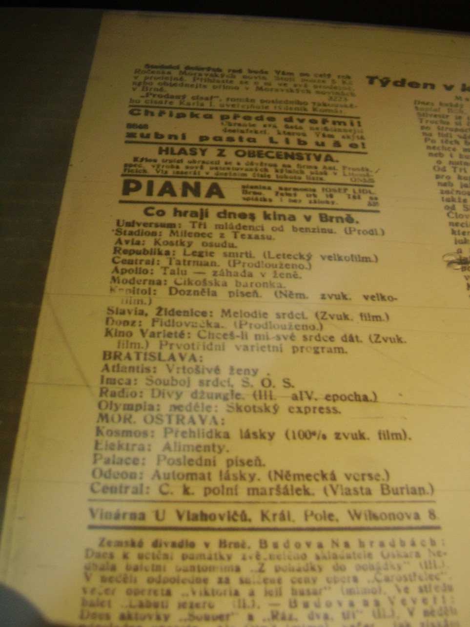 | Cinema | Moravské noviny | 1931-01-03 | 2 | 100 |