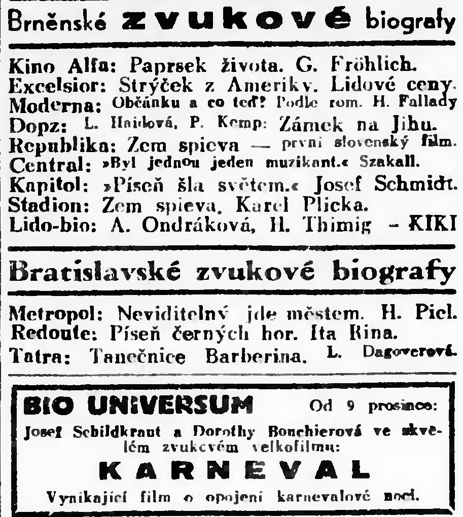 | Programme publishing date | Lidové noviny | 1933-12-09 | 617 | 100 |