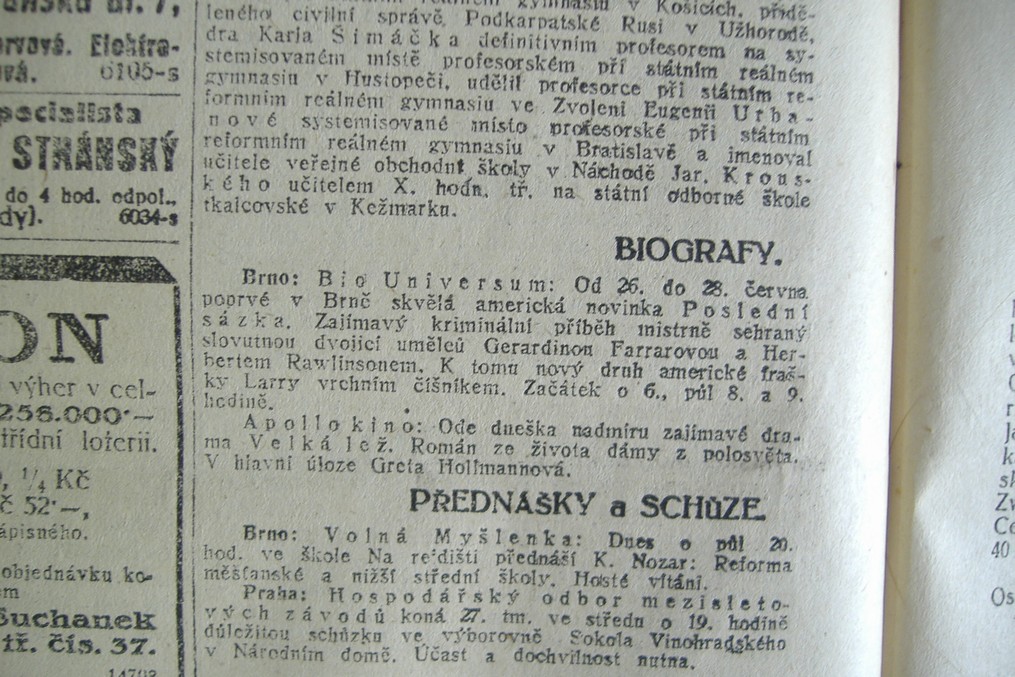 | Cinema | Lidové noviny | 1923-06-26 | 315 | 100 |