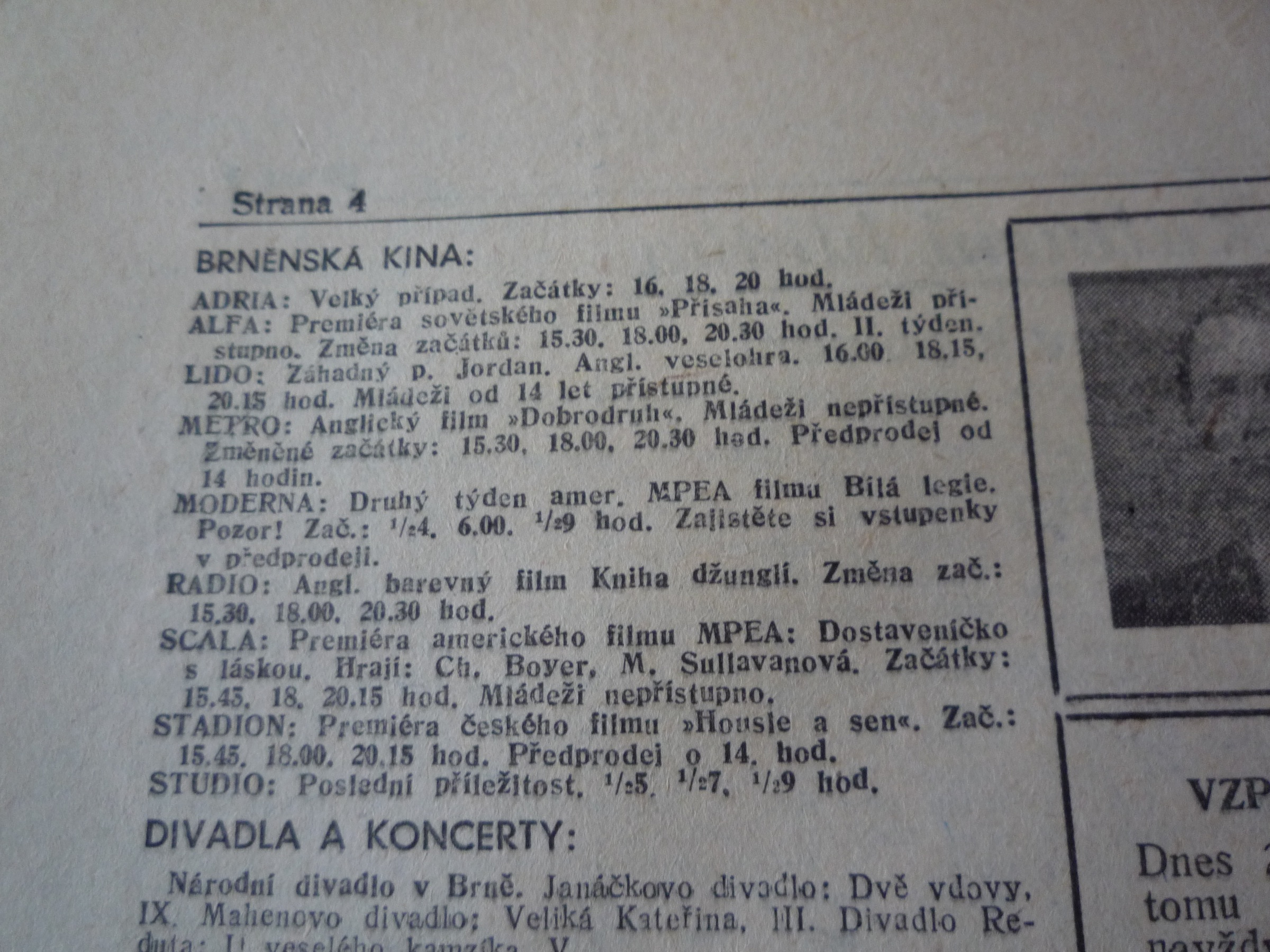 | Cinema | Čin | 1947-02-28 | 50 | 100 |