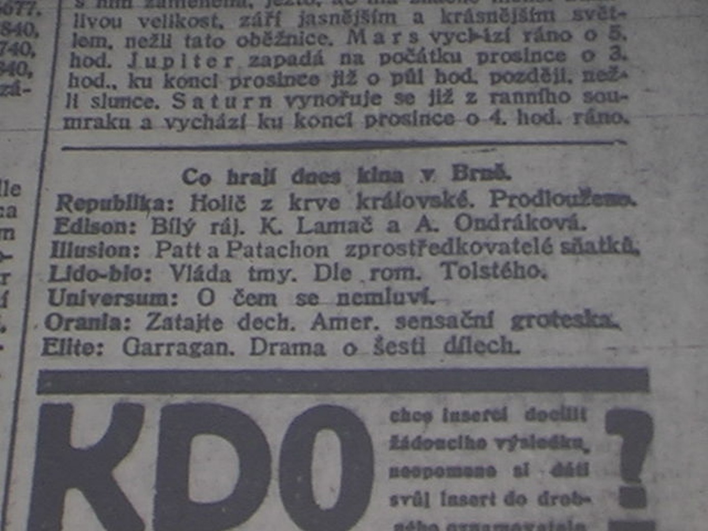 | Cinema | Moravské noviny | 1925-12-02 | 274 | 100 |
