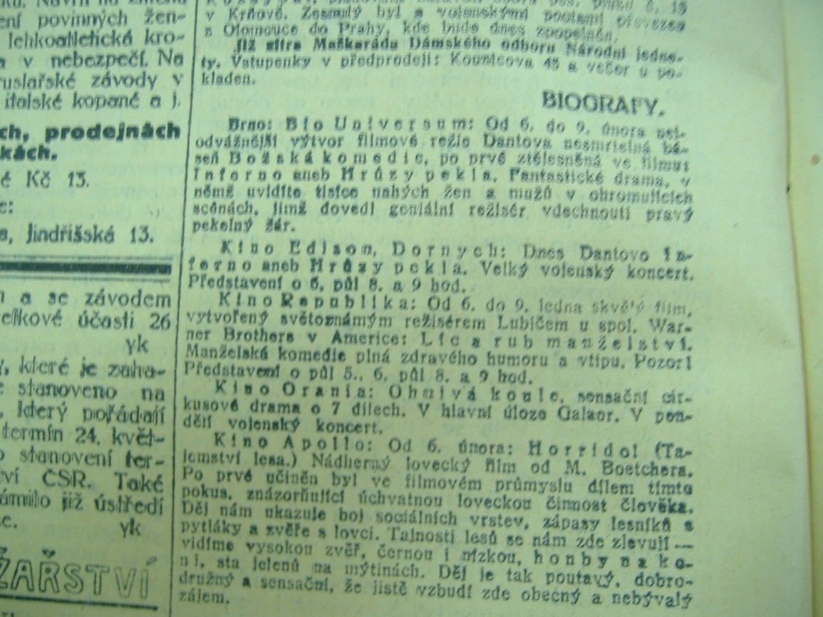 | Cinema | Tagesbote aus Mähren und Schlesien | 1925-02-06 | 59 | 100 |