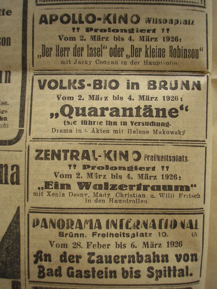 | Cinema | Moravské noviny | 1926-03-03 | 50 | 100 |