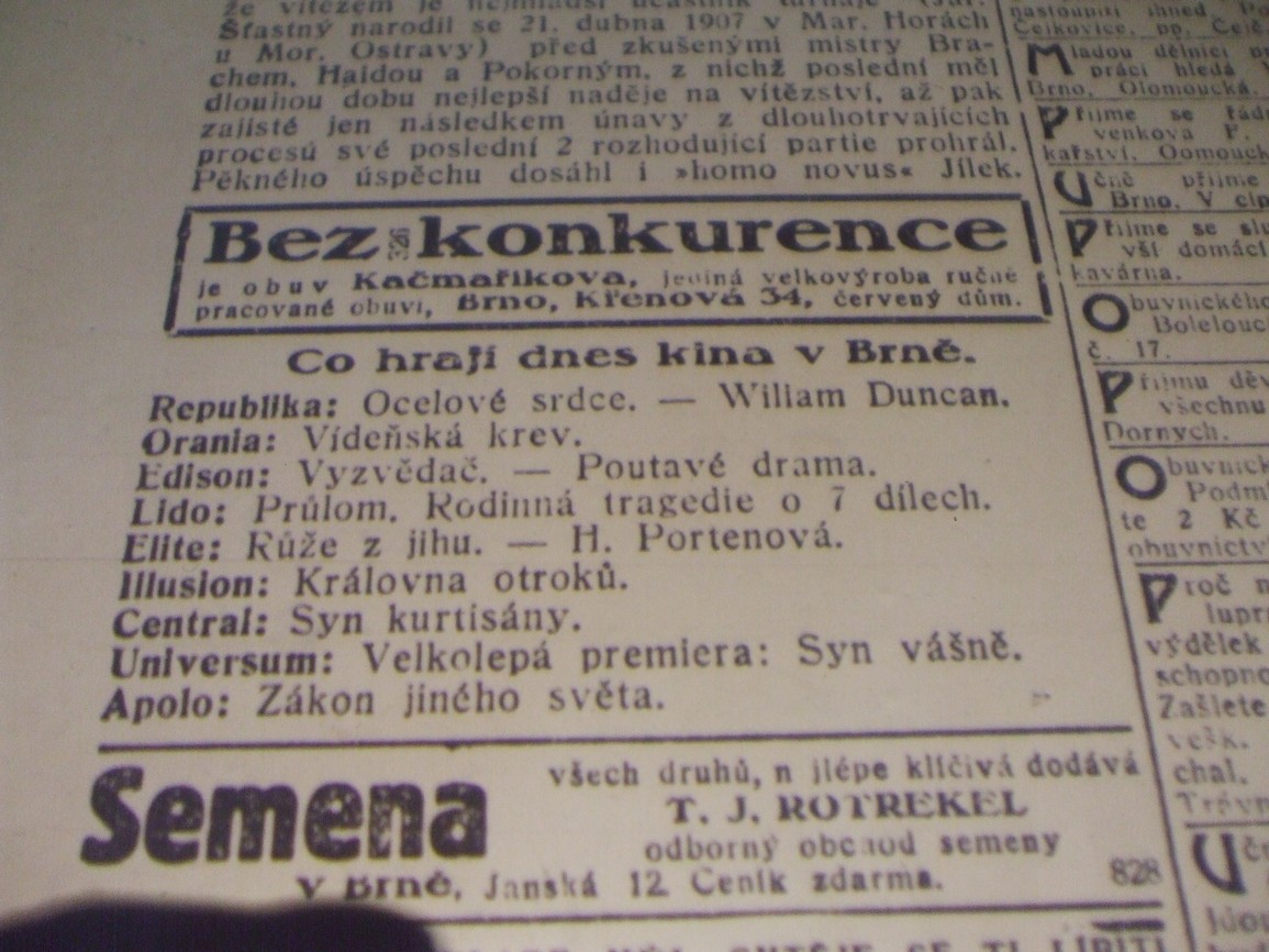 | Cinema | Moravské noviny | 1926-04-30 | 100 | 100 |