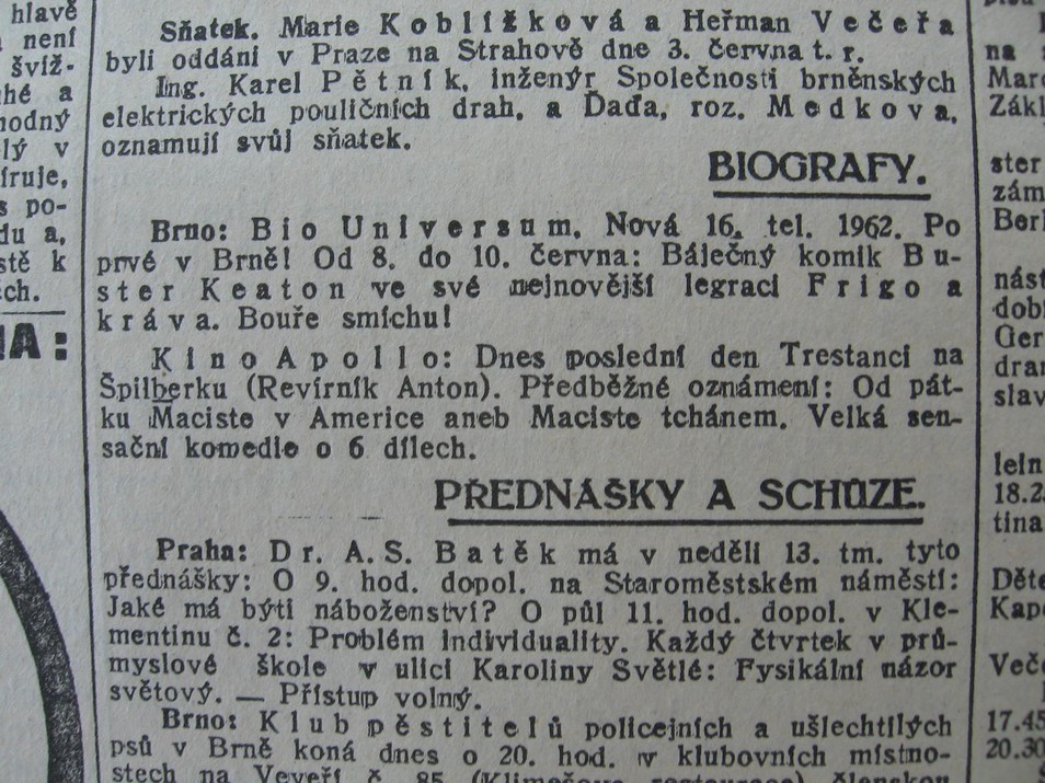| Cinema | Moravské noviny | 1926-06-09 | 131 | 100 |