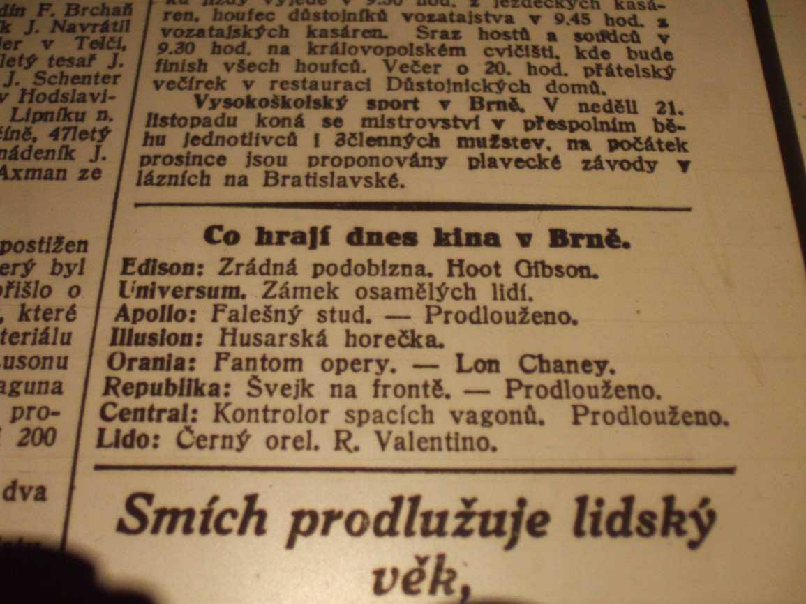 | Cinema | Moravské noviny | 1926-11-10 | 257 | 100 |