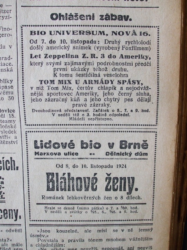 | Cinema | Rovnost | 1924-11-07 | 305 | 100 |