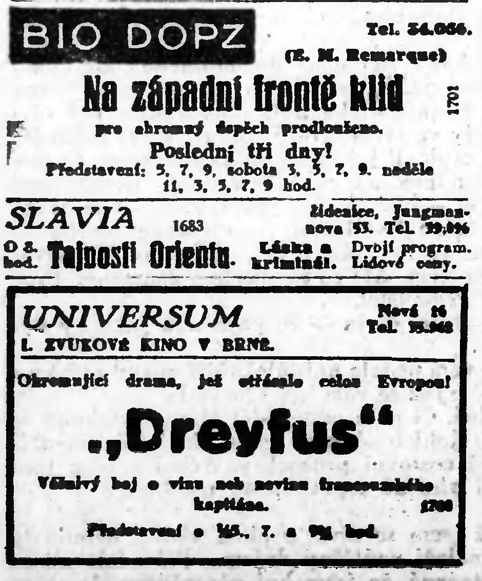 | Programme publishing date | 1931-02-10: Moravské noviny | 1931-02-10 | 34 | 100 |