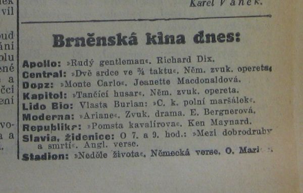 | Programme publishing date | 1931-05-15: Moravské noviny | 1931-05-15 | 113 | 100 |