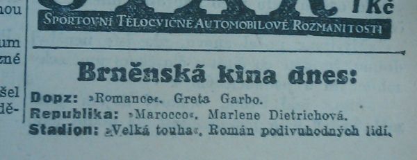 | Cinema | Moravské slovo | 1931-08-11 | 186 | 100 |