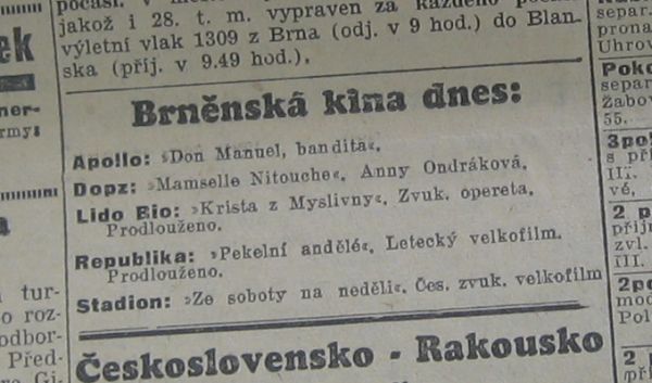 | Cinema | Moravské slovo | 1931-10-03 | 231 | 100 |