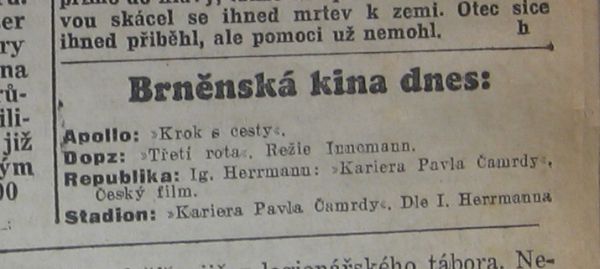 | Cinema | Moravské slovo | 1931-12-29 | 295 | 100 |