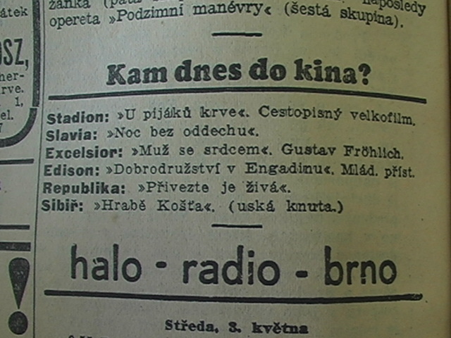 | Cinema | Moravské slovo | 1933-05-03 | 85 | 100 |