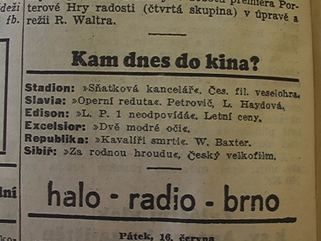 | Cinema | Moravské slovo | 1933-06-16 | 116 | 100 |