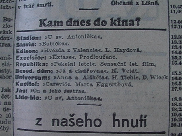 | Cinema | Moravské slovo | 1933-11-17 | 224 | 100 |