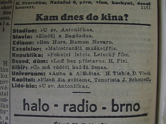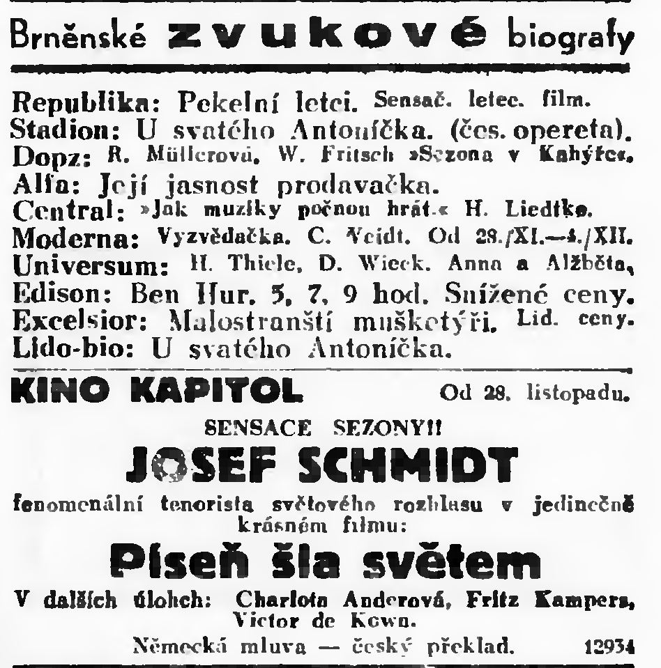 | Cinema | Moravské slovo | 1933-11-28 | 231 | 100 |