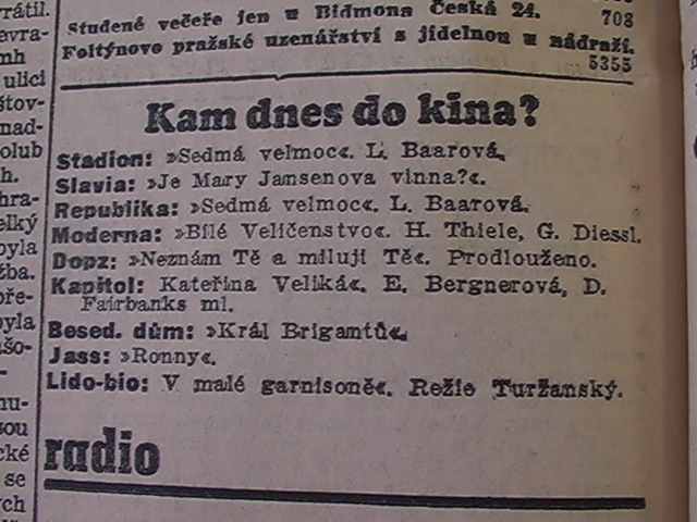 | Cinema | Moravské slovo | 1934-03-13 | 50 | 100 |