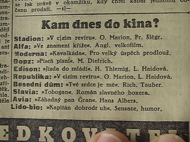| Cinema | Moravské slovo | 1935-03-27 | 61 | 100 |