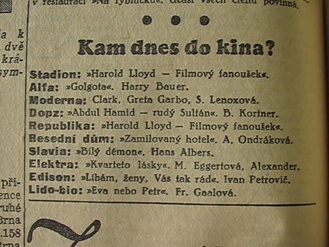 | Cinema | Moravské slovo | 1935-04-24 | 80 | 100 |