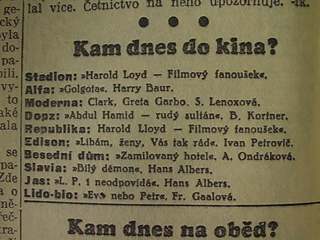 | Cinema | Moravské slovo | 1935-04-25 | 81 | 100 |