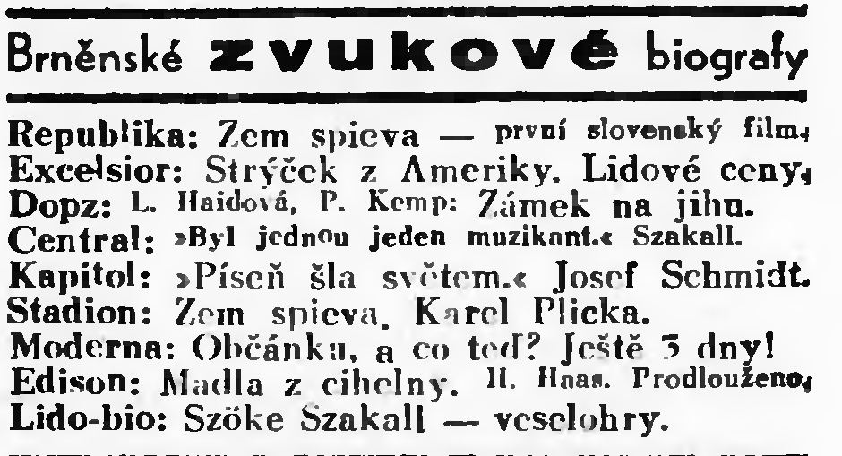 | Programme publishing date | 1933-12-12: Lidové noviny | 1933-12-12 | 622 | 100 |