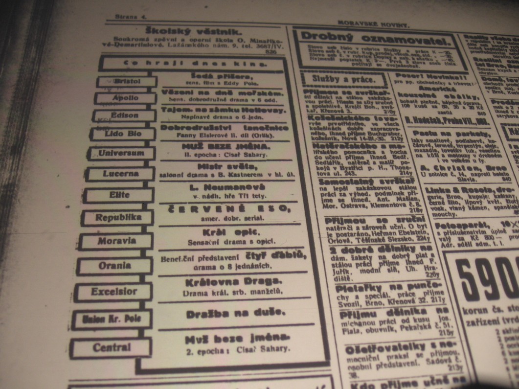 | Programme publishing date | 1921-07-26: Moravské noviny | 1921-07-26 | 169 | 100 |