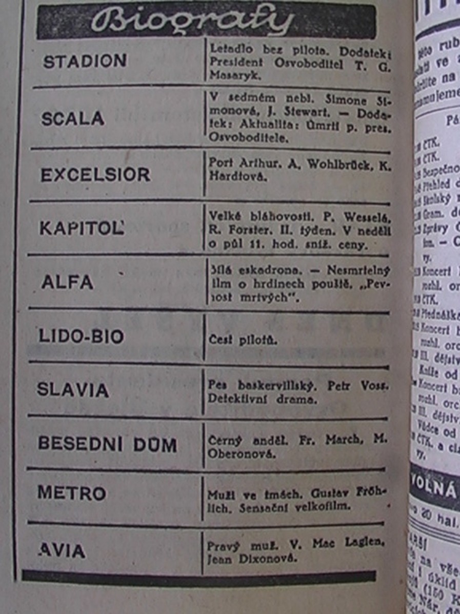 | Cinema | Moravské slovo | 1937-09-17 | 219 | 100 |