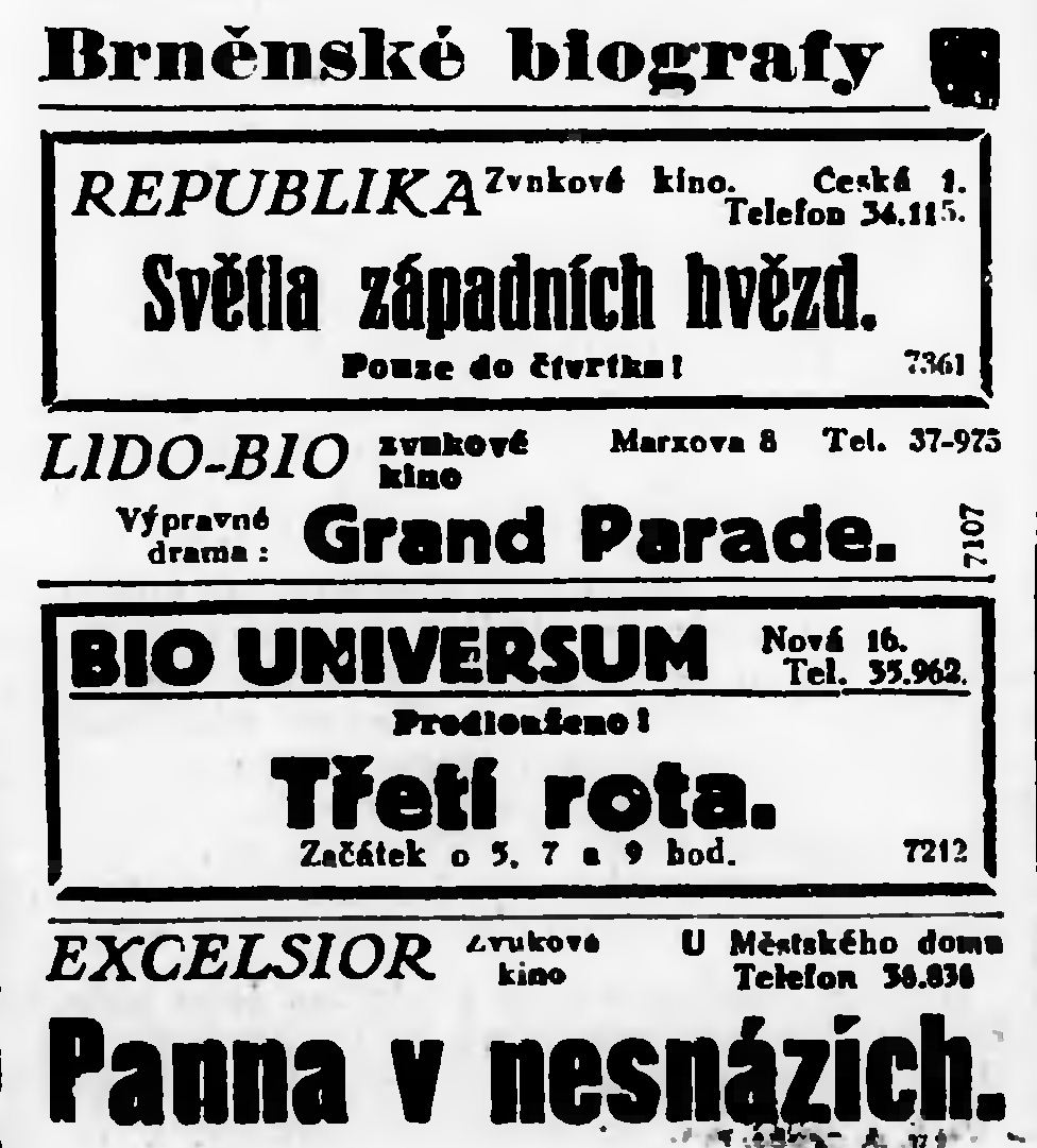 | Number of screenings | Lidové noviny | 1932-06-21 | 313 | 100 |