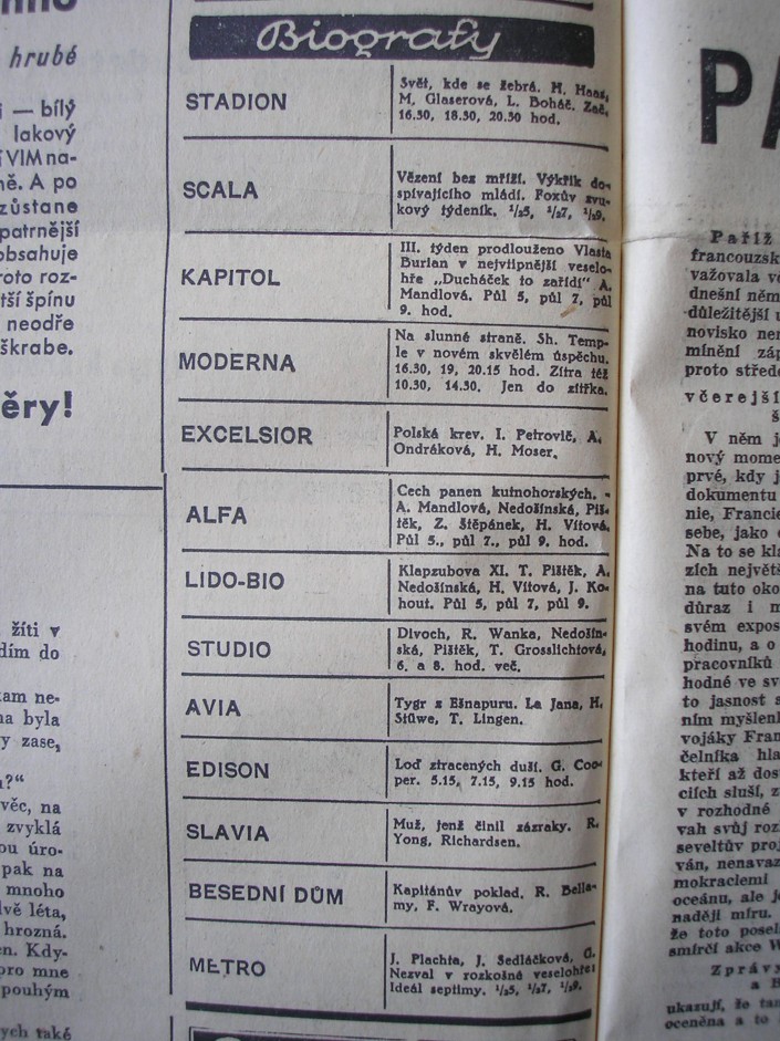 | Cinema | Moravské slovo | 1938-09-27 | 227 | 100 |