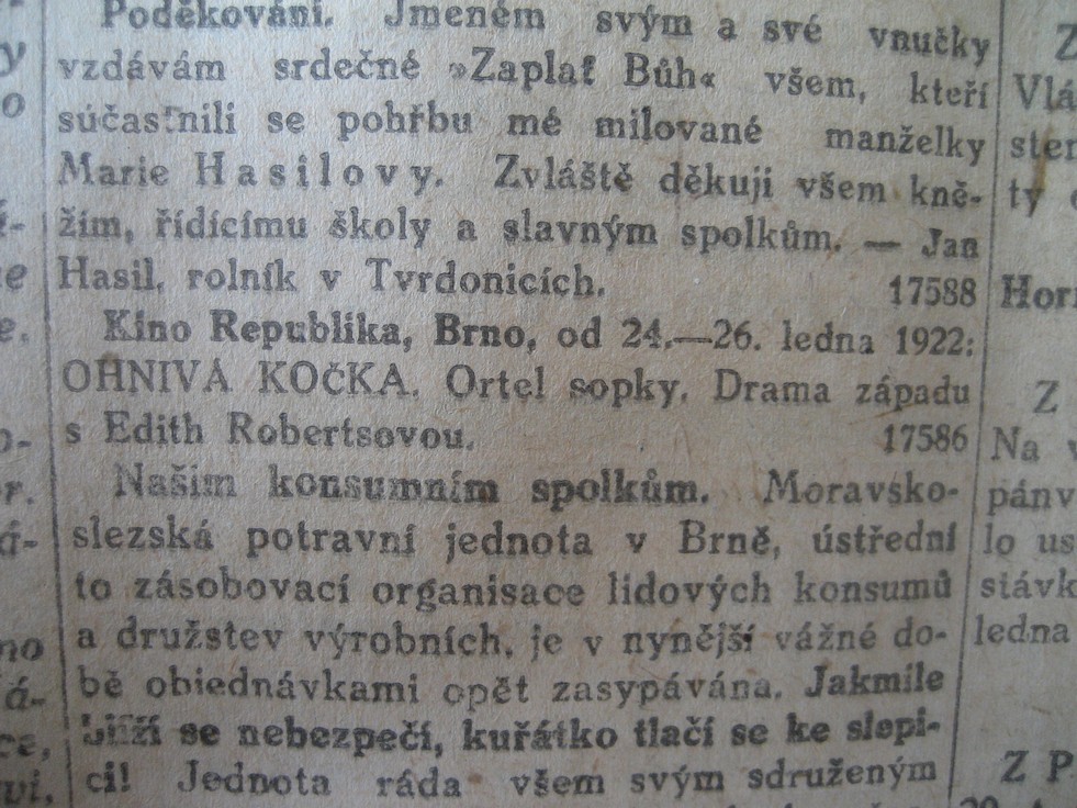 | Programme publishing date | 1922-01-24: Rovnost | 1922-01-24 | 24 | 100 |