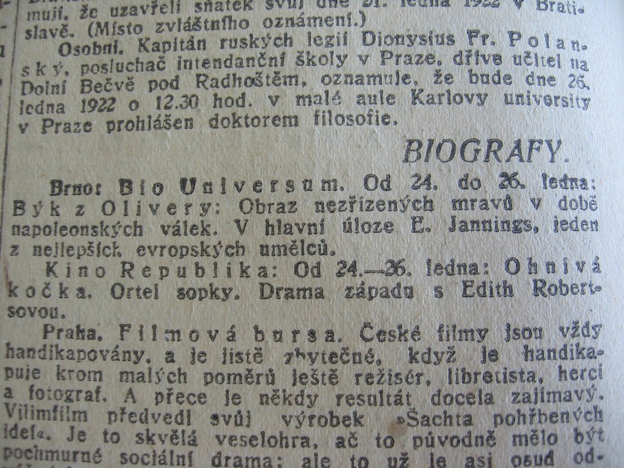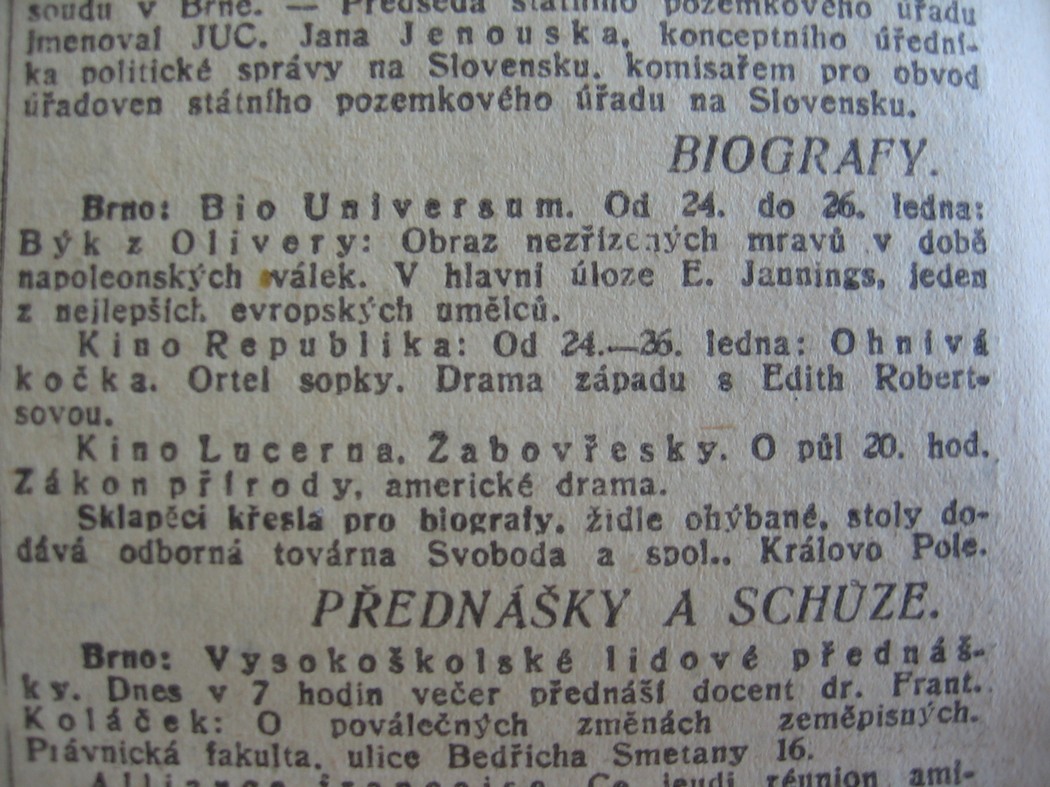 | Programme publishing date | 1922-01-26: Lidové noviny | 1922-01-26 | 46 | 100 |