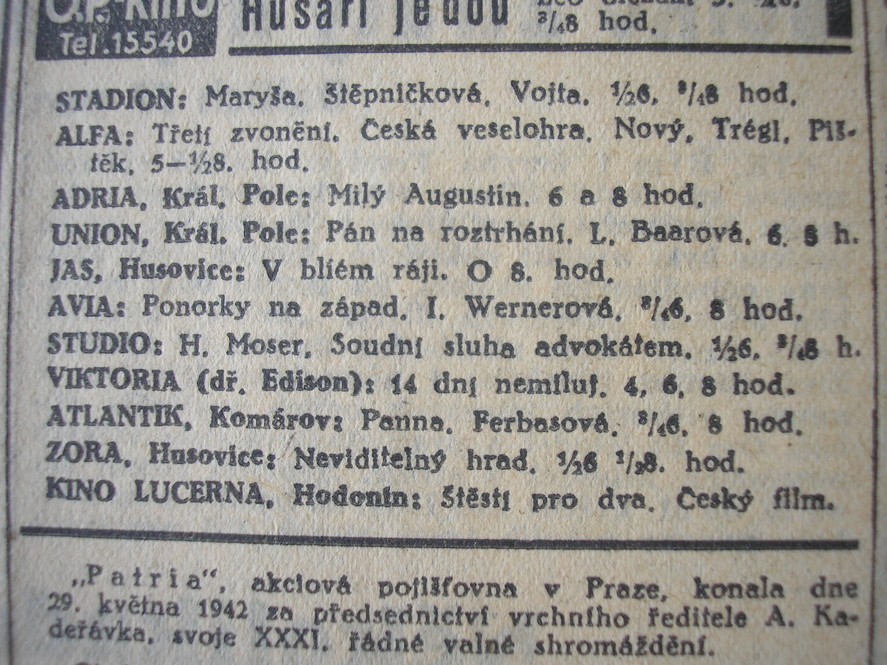 Není jisté, jestli se číslo promítalo od 1. nebo 2. června 1942, protože 1. června 1942 deník Moravské slovo nevyšel a 2. června 1942 začíná nový program. Ani jestli se číslo promítalo do 4., 5. nebo 6. června 1942, protože č. 132 z 5. června 1942 a č. 133 z 6. června 1942 deníku Moravské slovo v materiálech chybí.
