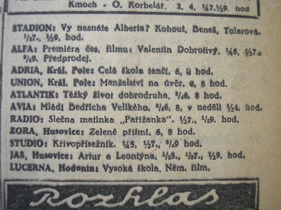 | Cinema | Moravské slovo | 1942-08-21 | 198 | 100 |
