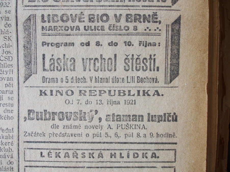 | Programme publishing date | 1921-10-08: Moravské noviny | 1921-10-08 | 230 | 100 |