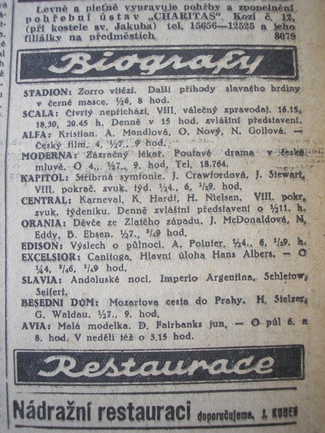 | Cinema | Moravské slovo | 1940-07-20 | 168 | 100 |