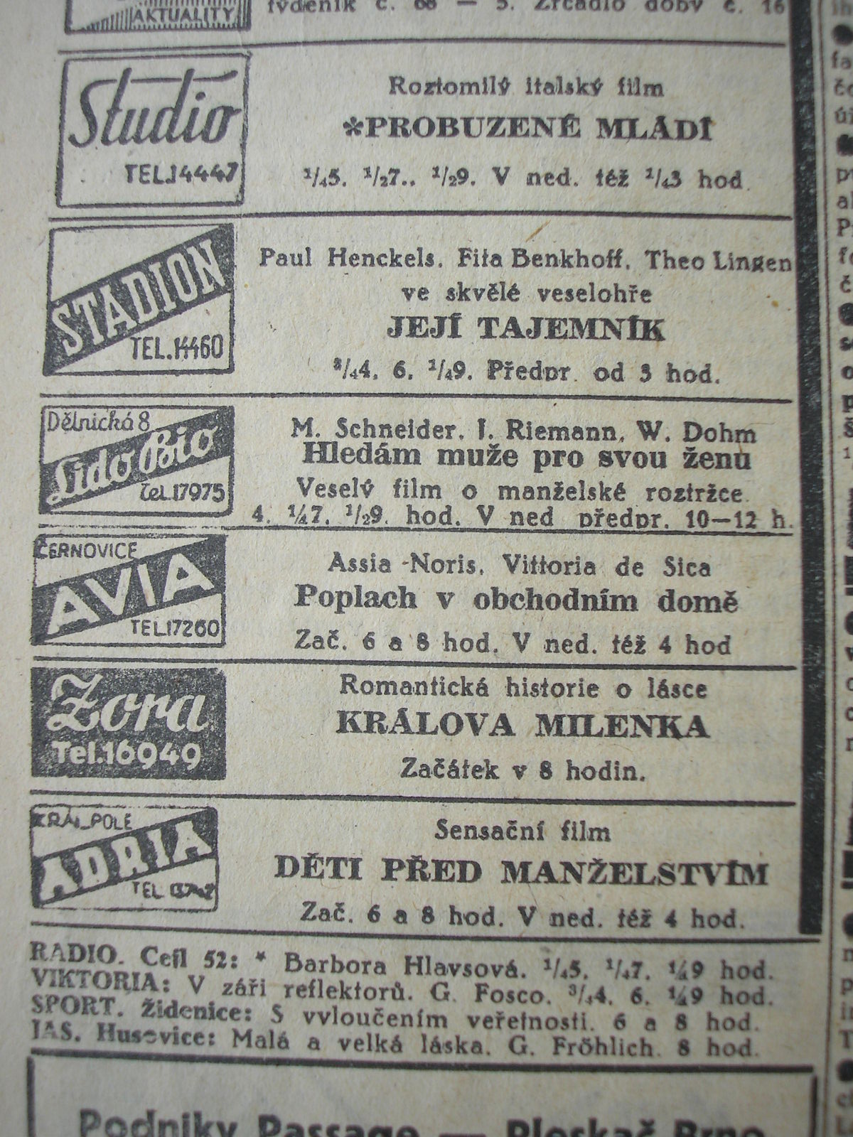 | Cinema | Moravské slovo | 1944-07-18 | 169 | 100 |