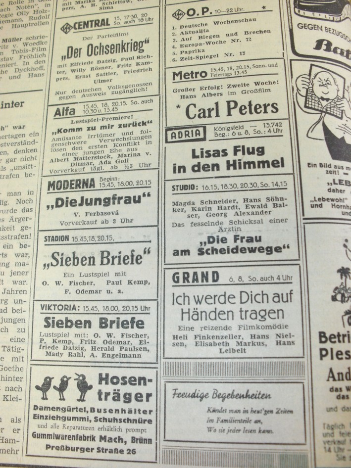 | Programme publishing date | 1944-08-04: Brünner Abendblatt | 1944-08-04 | 100 | |