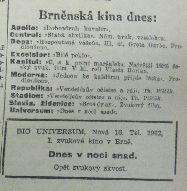 | Programme publishing date | Moravské slovo | 1930-06-04 | 131 | 100 |